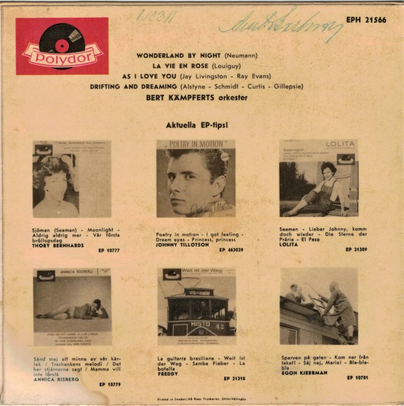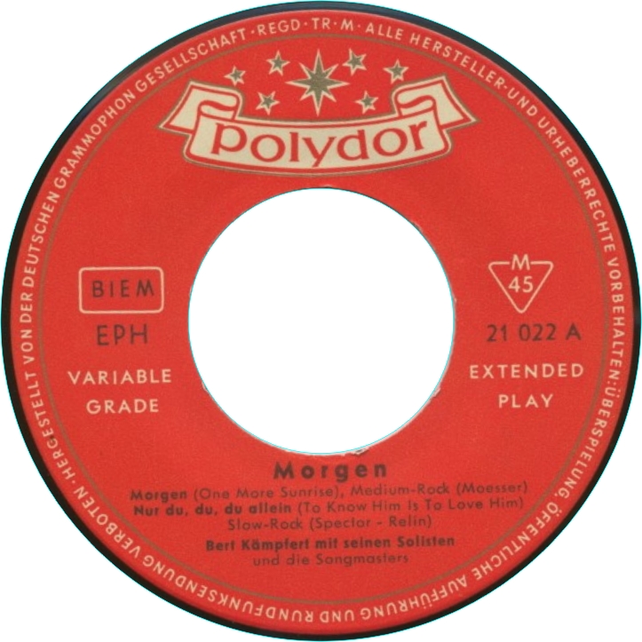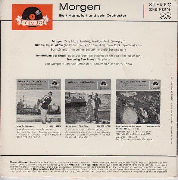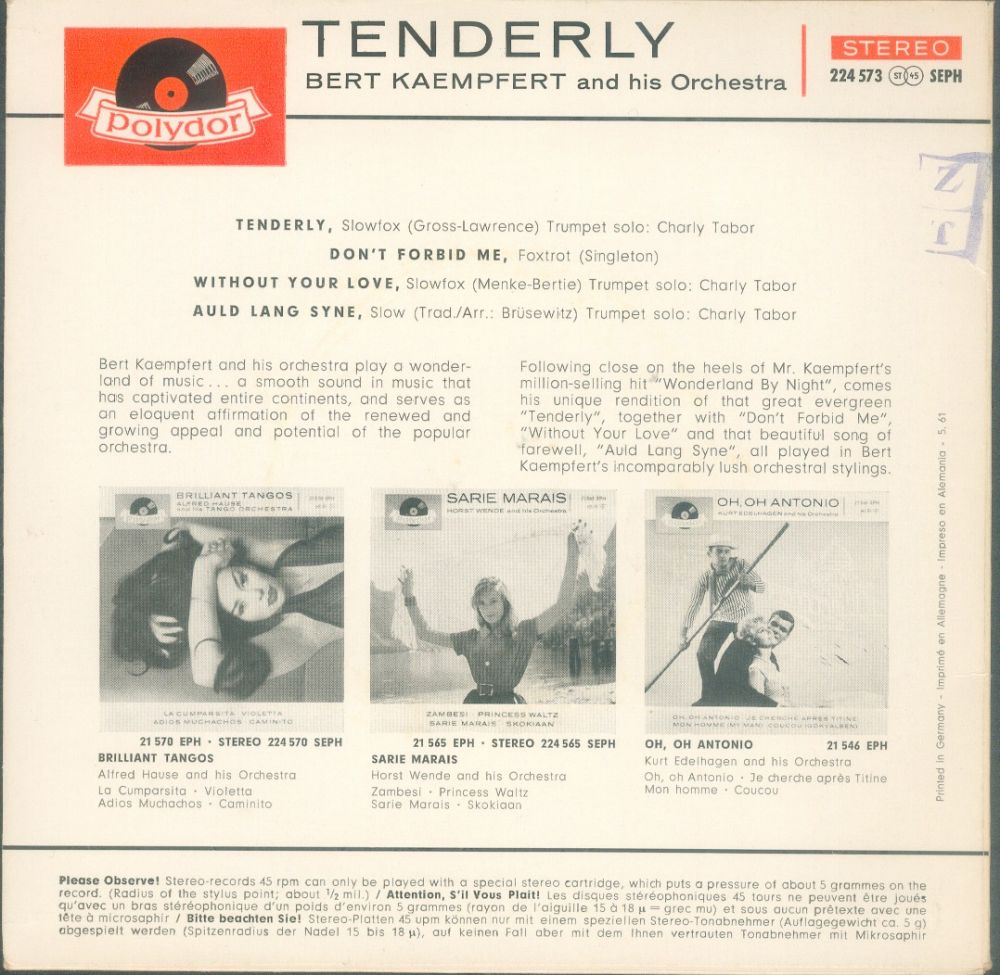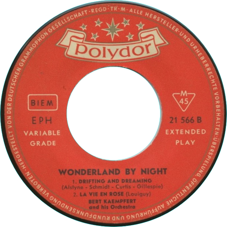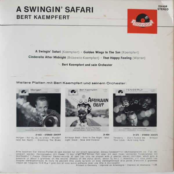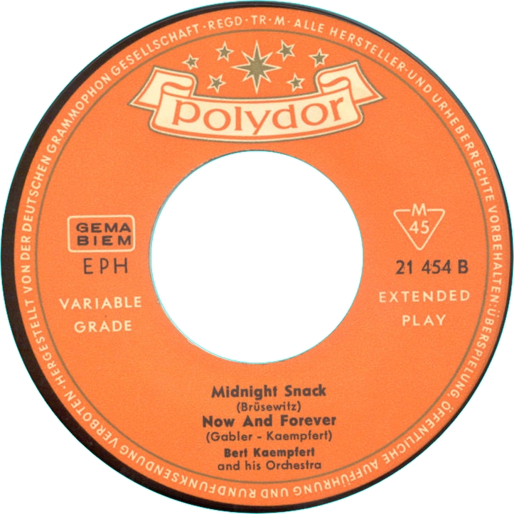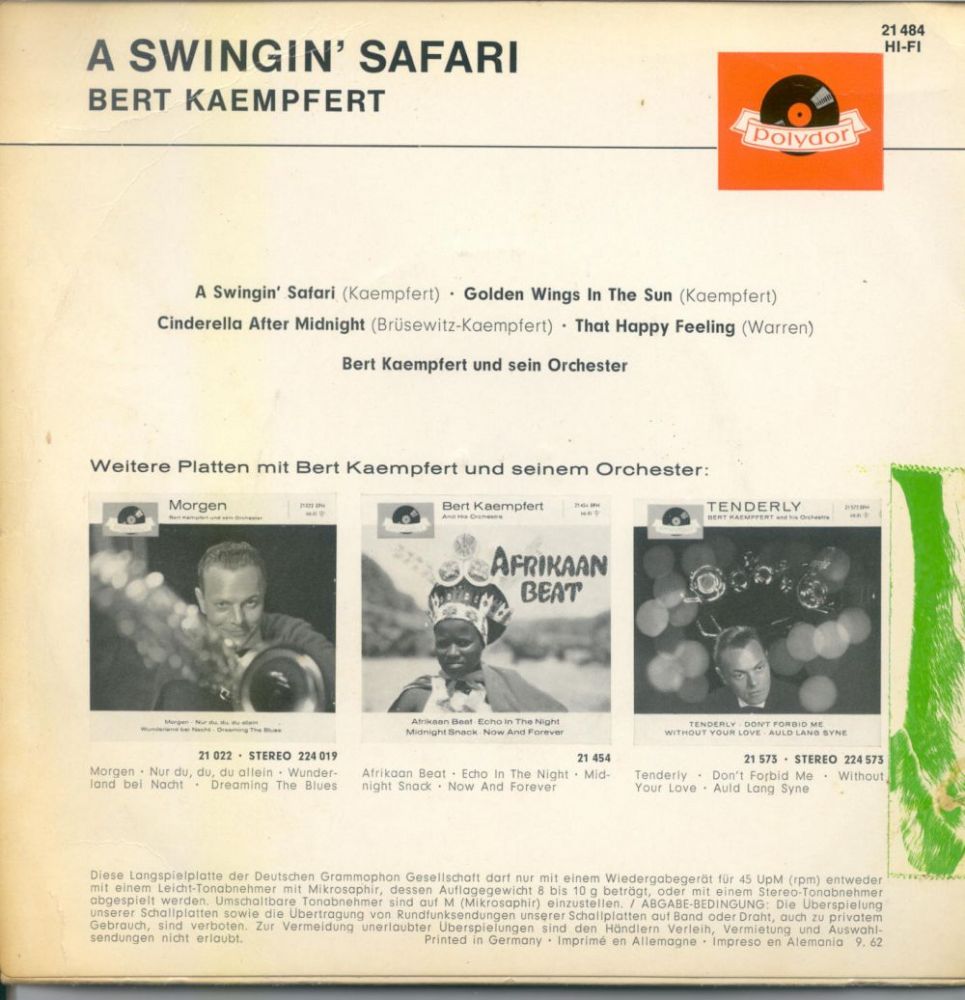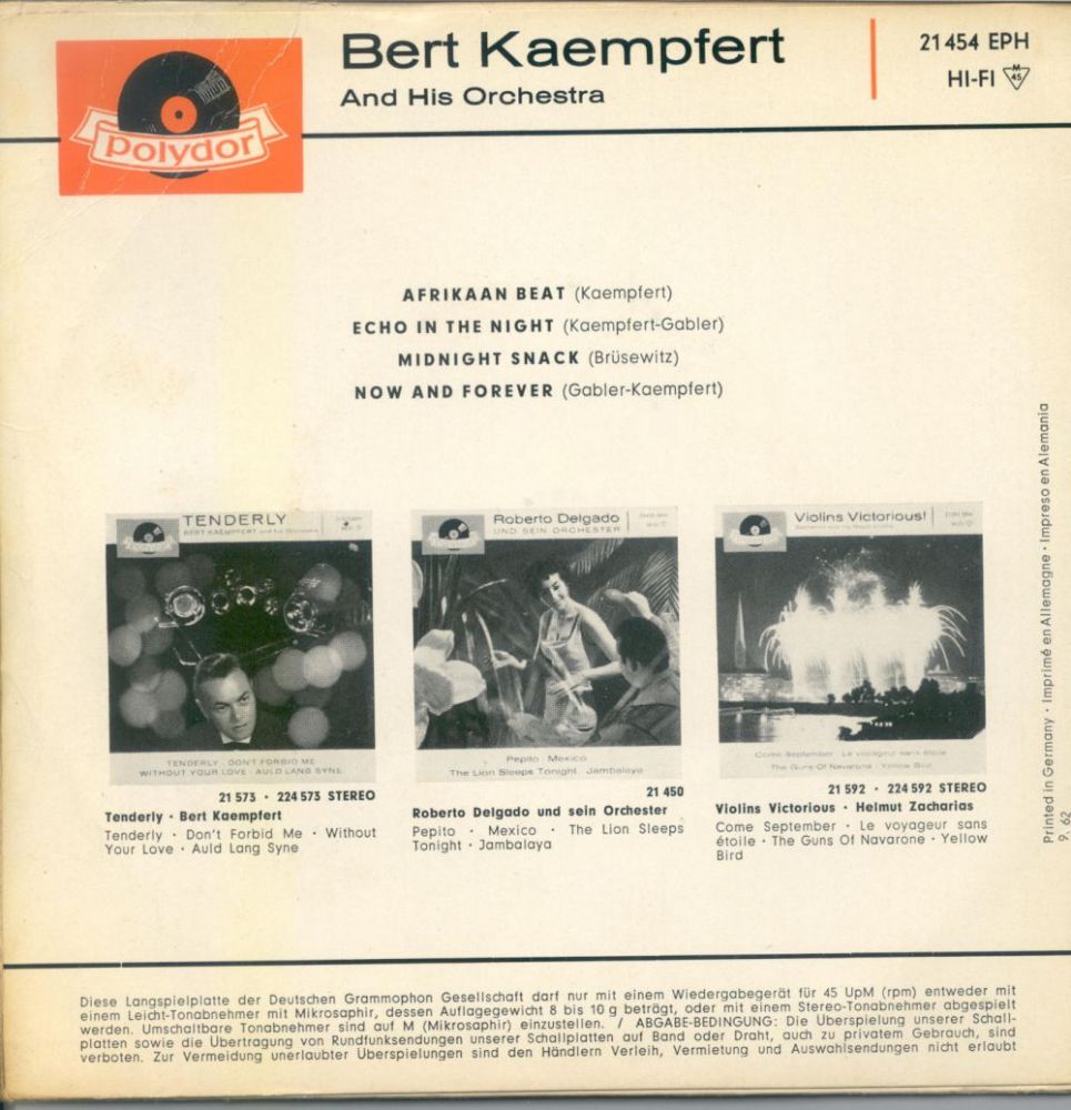 Es folgen alle mir bekannten deutschen Ausgaben der Polydor EP's von Bert Kämpfert uns seinem Orchester. Buchclub Veröffentlichungen und Heliodor (Bob Parker) folgen später.