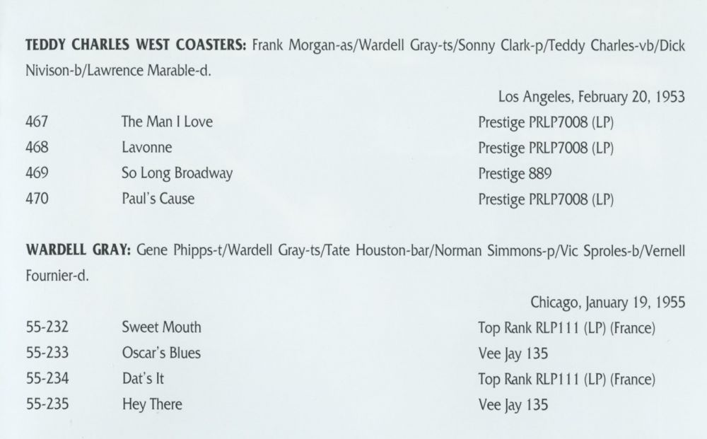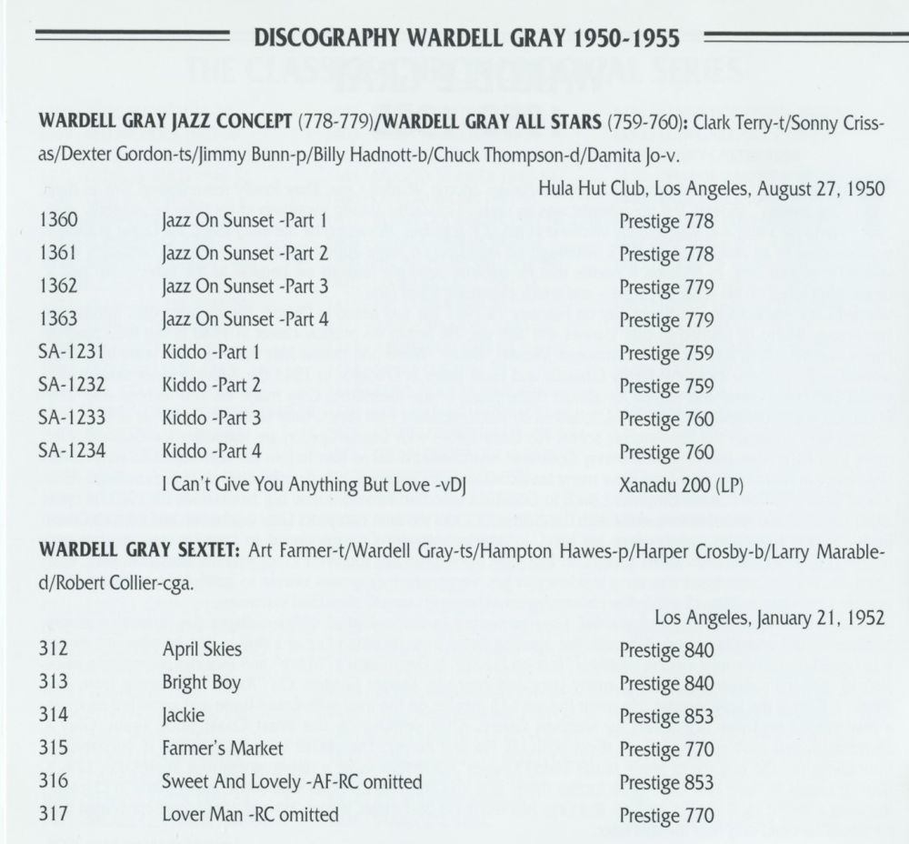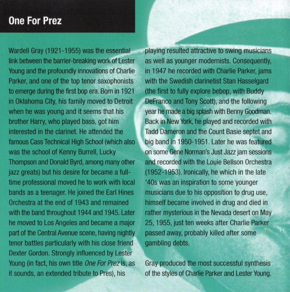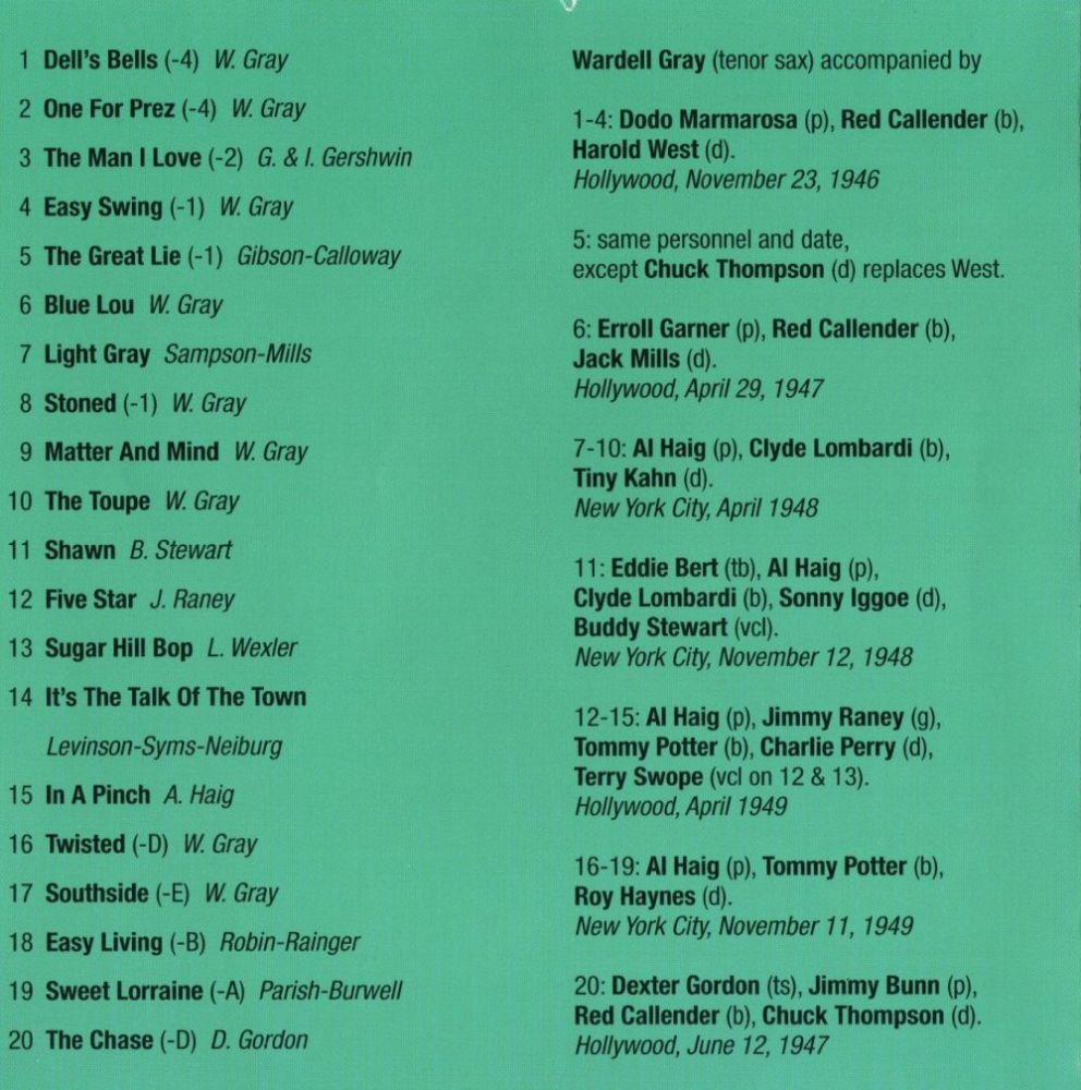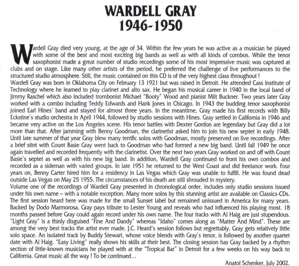 hier mal Wardell Gray auch wenn die Suchfunktion den Namen Gray so garnicht mag, sondern lieber Grey anzeigt !