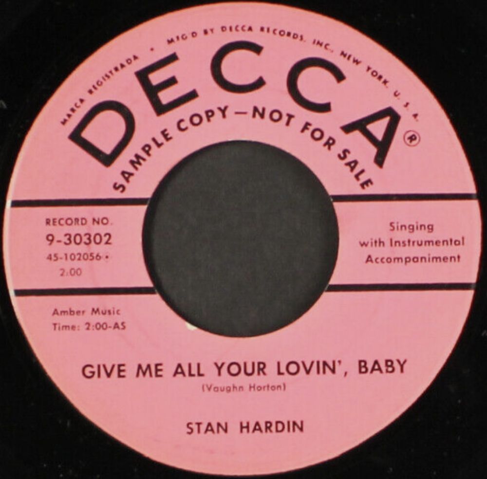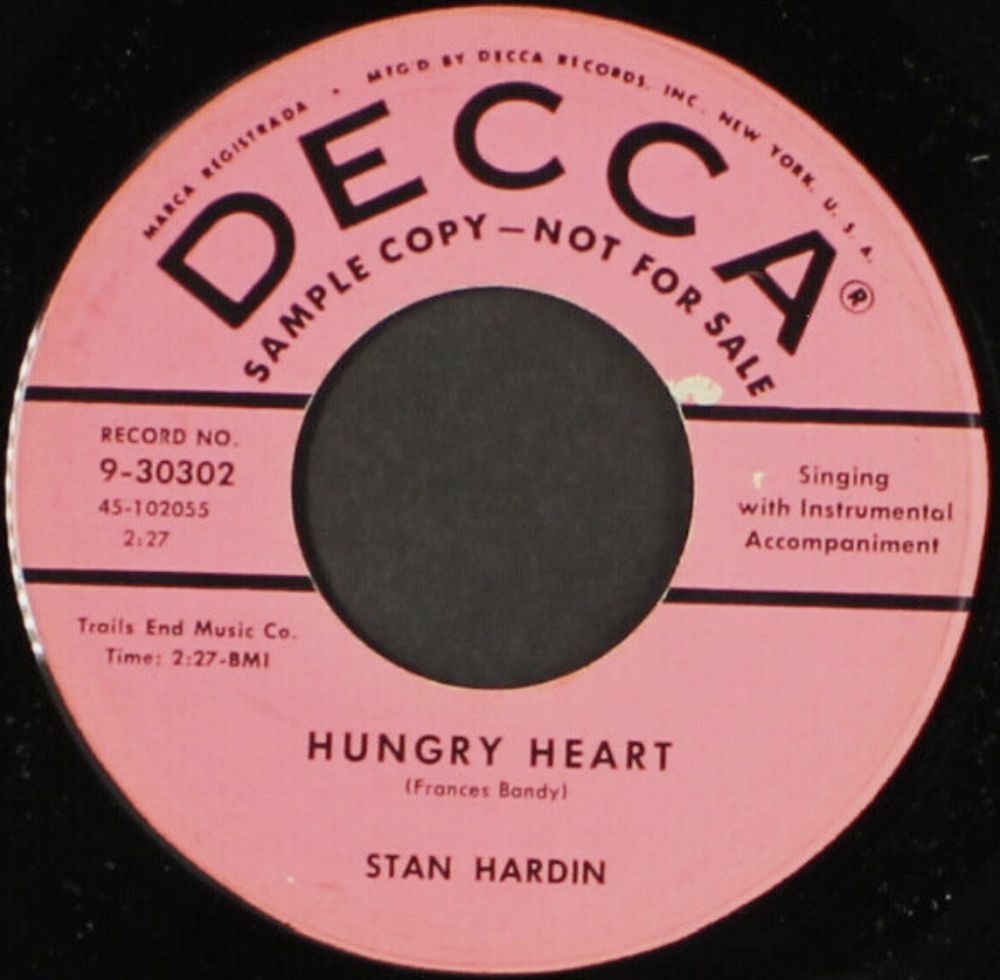 04 57....9-30302....STAN HARDIN..Hungry Heart (45-102055)/Give Me All Your Lovin', Baby (45-102056)