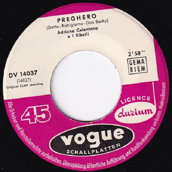. . . und Adriano Celentano interessierte sich auch sehr bald für diesen Titel, um ihn für seine Landsleute durch Mariano Detto und Don Backy aufbereiten zu lassen.