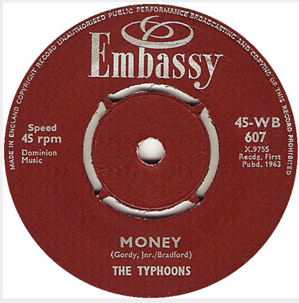 12 63….45-WB 607….THE TYPHOONS..Glad All Over (X.9754)/Money (X.9755)