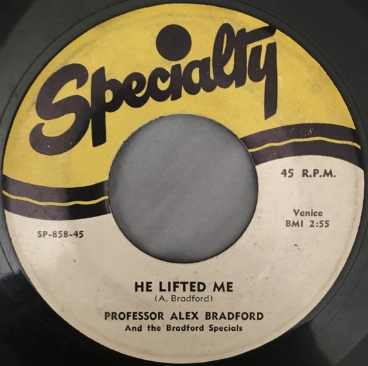 Er nahm seine erste Hitplatte “Too Close To Heaven“ (1953) auf, die als Professor Alex Bradford and the Bradford Specials angekündigt wurde, 1954 über eine Million Mal verkauft wurde und mit einer Goldenen Schallplatte ausgezeichnet wurde. Alex' Debüt bei Specialty im Jahr 1953, “Too Close To Heaven“, war ein sofortiger Hit und wurde eine der am besten verkauften Gospel-Platten aller Zeiten.