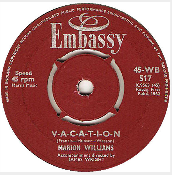 07 62....45-WB 517....MARION WILLIAMS Accompaniment directed by JAMES WRIGHT..Little Miss Lonely (X.9562)/V-A-C-A-T-I-O-N (X.9563)
