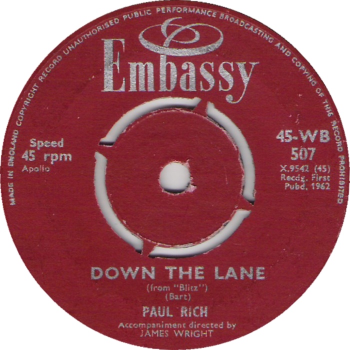 05 62....45-WB 507....PAUL RICH Accompaniment directed by JAMES WRIGHT..Down The Lane (X.9542)/PAUL RICH & MARIAN WILLIAMS Accompaniment directed by JAMES WRIGHT..Opposite (X.9543)