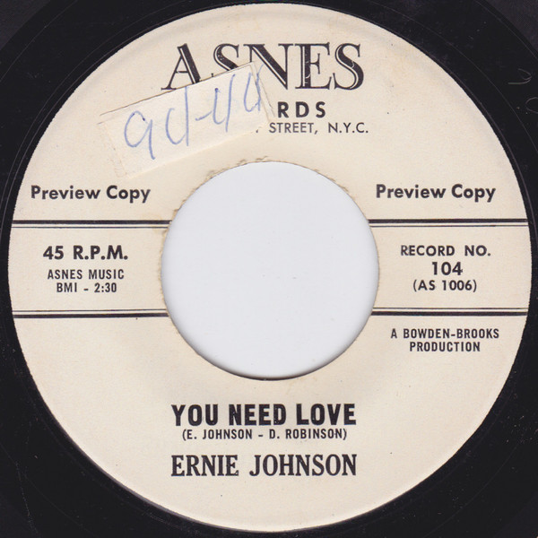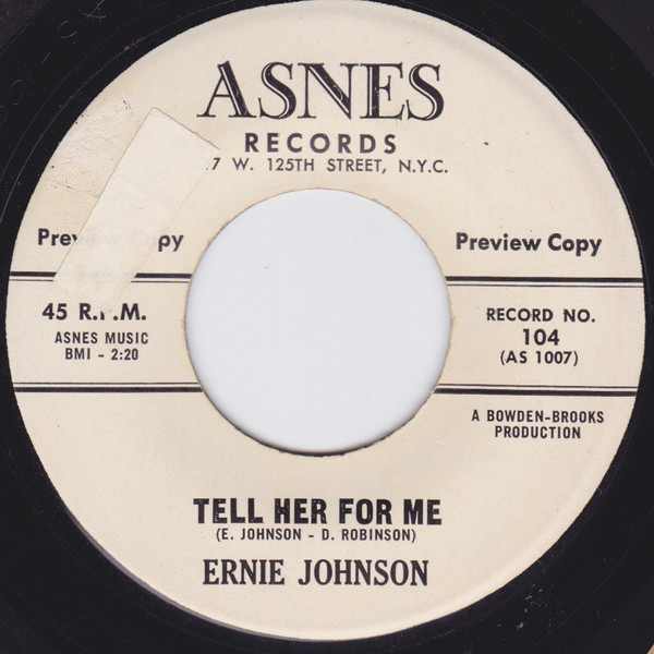 Ernie Johnson (22. Oktober 1945 – 20. August 2005) war besser bekannt als die Hälfte des amerikanischen Soul-Duos Eric & Ernie, das eine Reihe brillanter, wenn auch sträflich unbekannter Singles herausbrachte, die zu den besten Soul-Platten der 1960er Jahre zählen. Sie veröffentlichten auch Singles unter den Namen Ernie & Eddie, The New Bloods, The Sliding Doors und Ernie & Ed. Einige ihrer Songs wurden von Dee Clark, Jackie Wilson und James Carr aufgenommen.