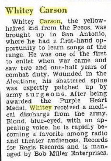 Ca Mid 1944 poss. New York City - Whitey Carson And His Texas Cowboys