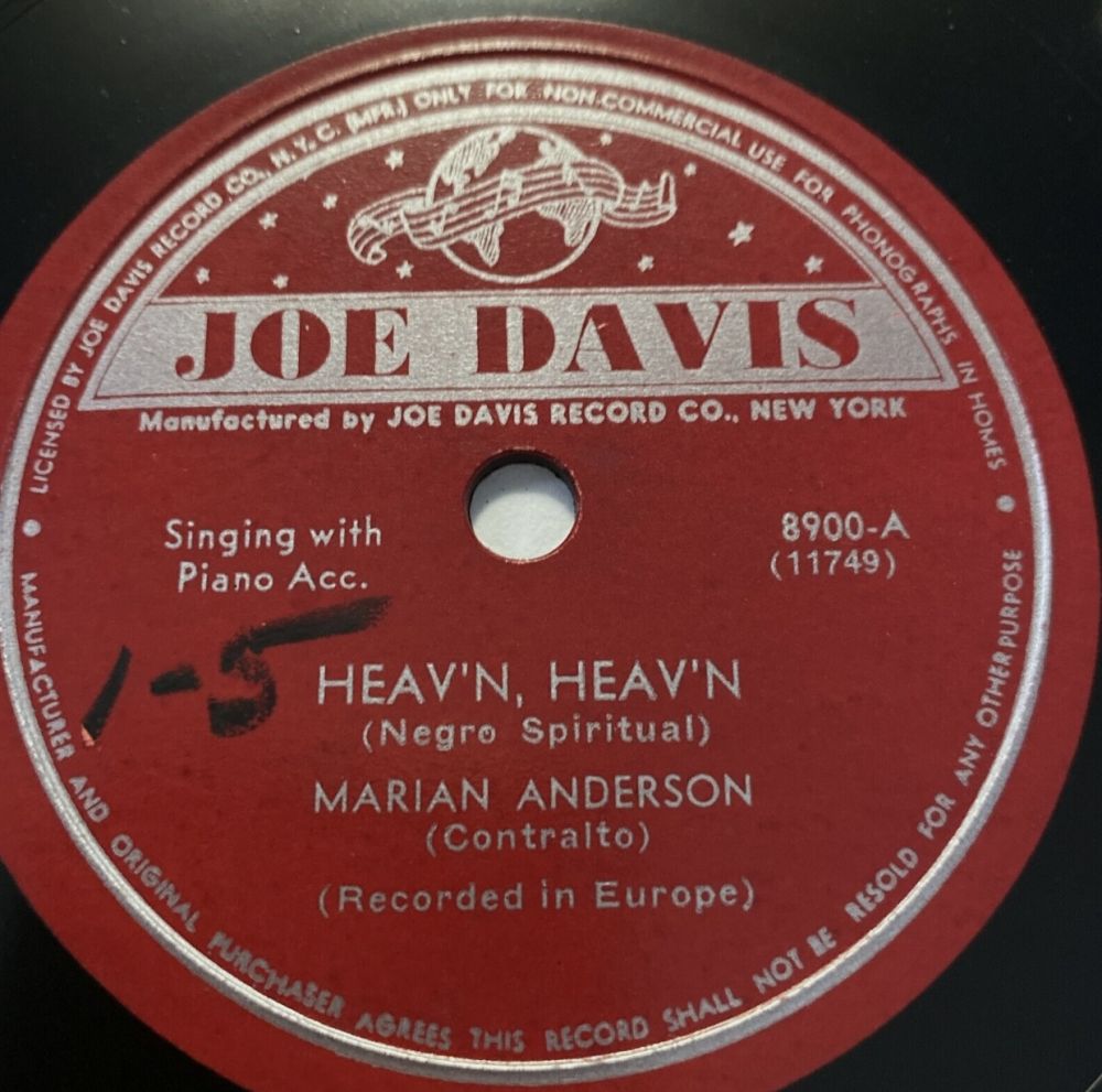?? 49....49-1418-A - WDM 1438….Marian Anderson Contralto RCA Victor Orchestra Charles O’Connell, Conductor..Carry Me Back To Old Virginny (18314-A)/-B….My Old Kentucky Home (18314-B)