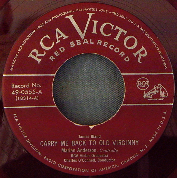 ?? 49....49-0555-A....Marian Anderson Contralto RCA Victor Orchestra Charles O’Connell, Conductor..Carry Me Back To Old Virginny (18314-A)/-B….My Old Kentucky Home (18314-B)