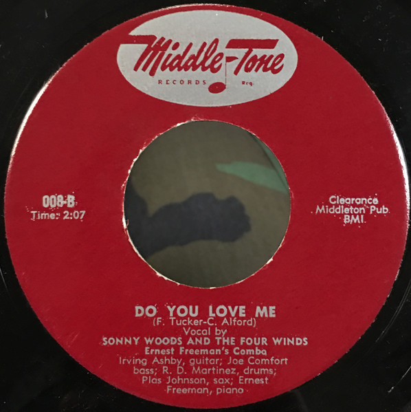04 56....008-A....SONNY WOODS AND THE FOUR WINDS Ernest Freeman's Combo Irving Ashby, guitar; Joe Comfort, bass; R. D. Martinez, drums; Plas Johnson, sax; Ernest Freeman, piano..I Promise/-B….Do You Love Me