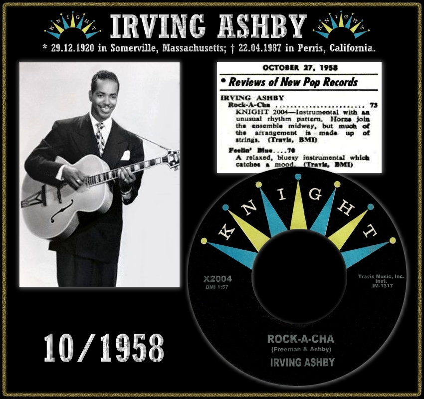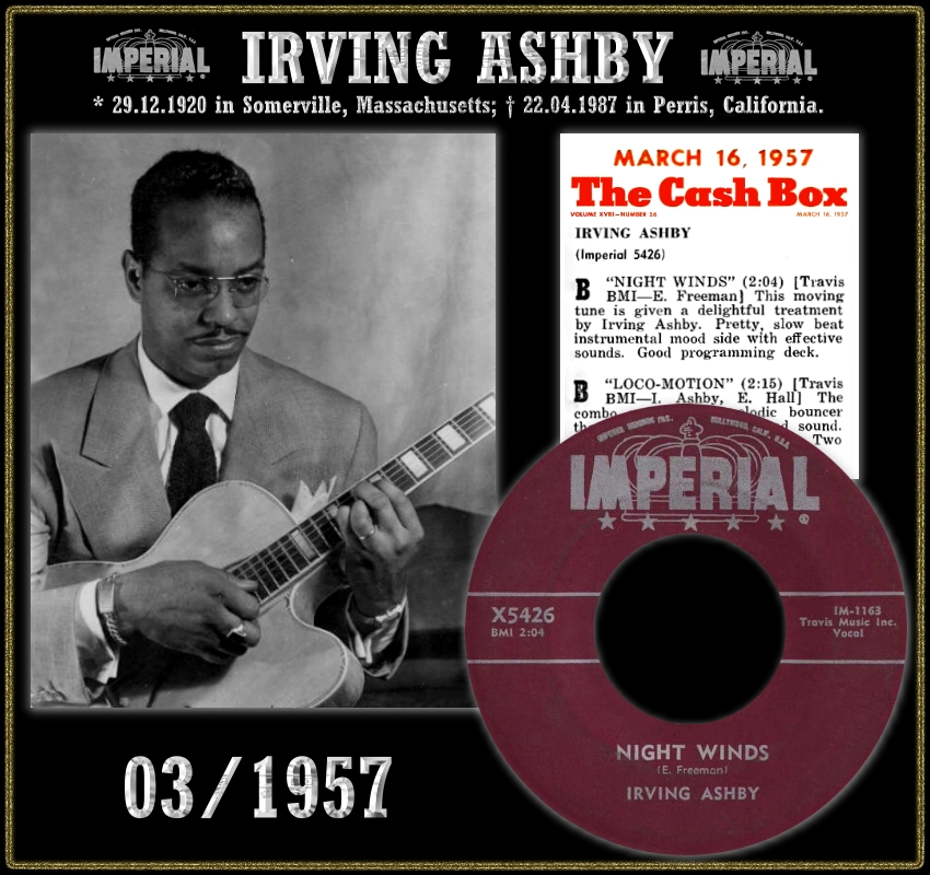 Der Jazz-Gitarrist Irving Ashby wurde am 29. Dezember 1920 in Somerville, Massachusetts, als Irving Conrad Ashby geboren und verstarb am 22. April 1987, erst 66-jährig, in Perris, Kalifornien, an einem Herzinfarkt. Vom September 1947 bis März 1951 war er Mitglied des King Cole Trios. Ab 1952 war er Mitglied des Oscar Peterson Trios, ging dann solo und widmete sich auch der Lehr- und Studienarbeit.