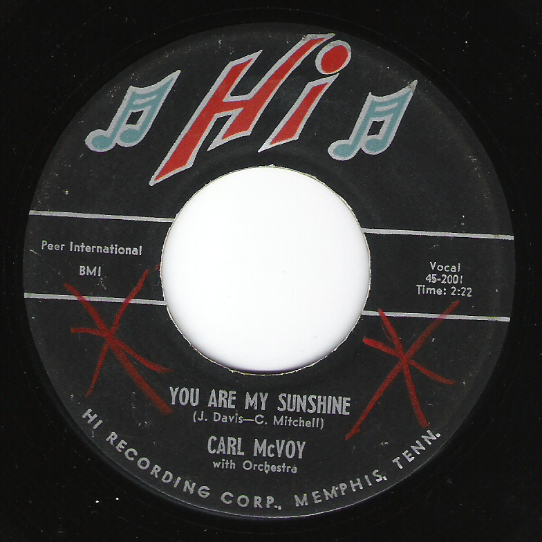 Carl McVoy hat insofern Geschichte geschrieben, weil die erste Platte des Hi-Labels (45-2001 "You Are My Sunshine"/"Tootsie") im Dezember 1957 unter seinem Namen veröffentlicht wurde. Der Titel "You Are My Sunshine" ist der Jimmy Davis-Klassiker, der hier ein bisschen angerockt und mit aufdringlicher Chorbegleitung angeboten wird, "Tootsie" hat da ganz andere Qualitäten: ein stampfender Rocker auf solider Boogie-Piano-Basis mit rhythmusverstärkendem Saxophon - eigentlich mehr Rhythm’n’Blues als Rockabilly. Der Platte war nicht viel Erfolg beschieden und so wurde die Aufnahme 1958 an Sam Philips verkauft, der sie auf Phillips International im Juni 1958 nochmals herausbrachte - ohne dass sich hier wirklicher Erfolg einstellte. Die Titel waren in Nashville/Tennessee mit dem Studio-Personal Chester B. "Chet" Atkins-g, Ernest "Ernie" Newton-b, Johnny Bernero-d und John "Ace" Cannon-tsax aufgenommen. Weitere Titel wie “Be Honest With You“, “My Crazy Dream“, “Oh Yeah“ und “Lonely Heart“ blieben unveröffentlicht.