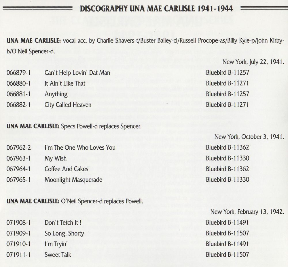 Nach ihrem Tod erschien Mitte der 80 er Jahre eine erste Carlisle-Neuauflage auf dem Harlequin-Label. Es folgten Wiederveröffentlichungen von RCA, dem der Bluebird-Katalog gehört, und dem französischen Label Melodie Jazz.
