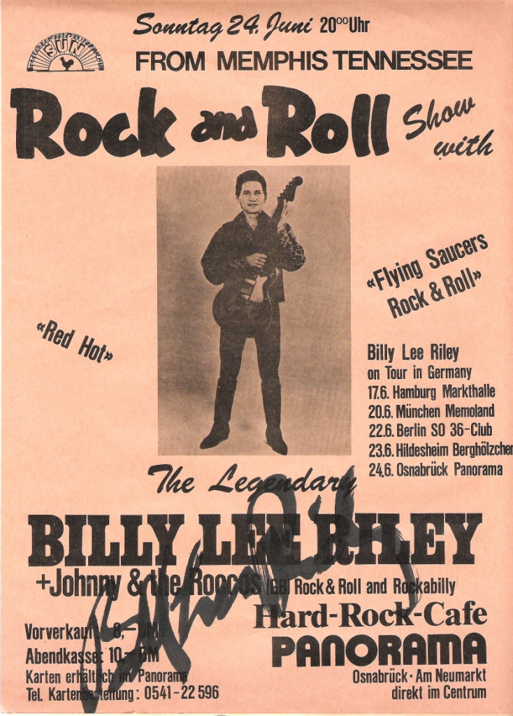 Leider steht es um die Gesundheit (und damit auch um die Finanzen) von Billy Lee Riley seit ein paar Jahren nicht so gut. Diverse Hüftoperationen und ein (im Krankenhaus!) erlittenener Herzinfarkt spielten ihm übel mit. Vor einigen Monaten ist er 75 Jahre alt geworden, Billy ist ein echter Kämpfer und stand auch im letzten Jahr schon wieder auf der Bühne.