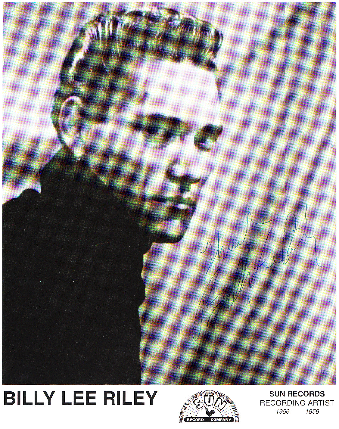 einer der besten Rocker auf dem kleinen SUN Label war Billy Lee Riley. Er spielte mehrere Instrumente und begleitete sehr, sehr viele Künstler des Labels auf den Platten. Um 1958 herum trennte er sich von SUN Records und machte eine Single für das Brunswick Label, danach kam er 1959 nocheinmal zu SUN zurück.