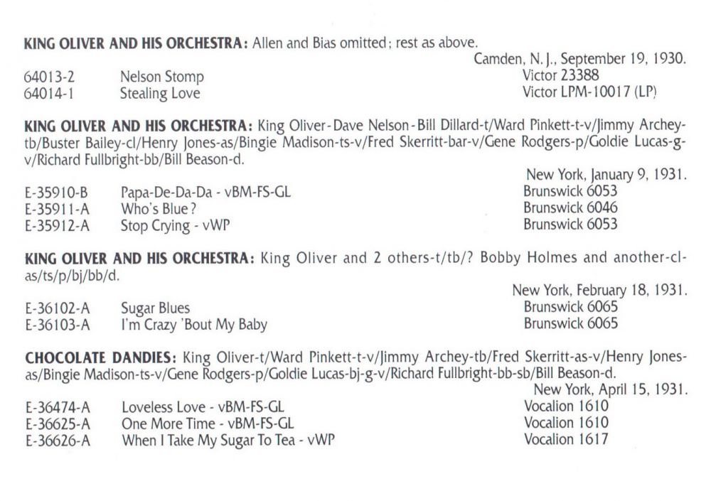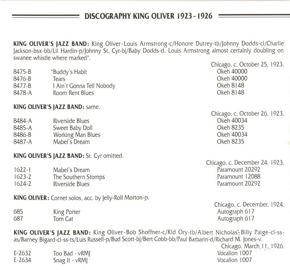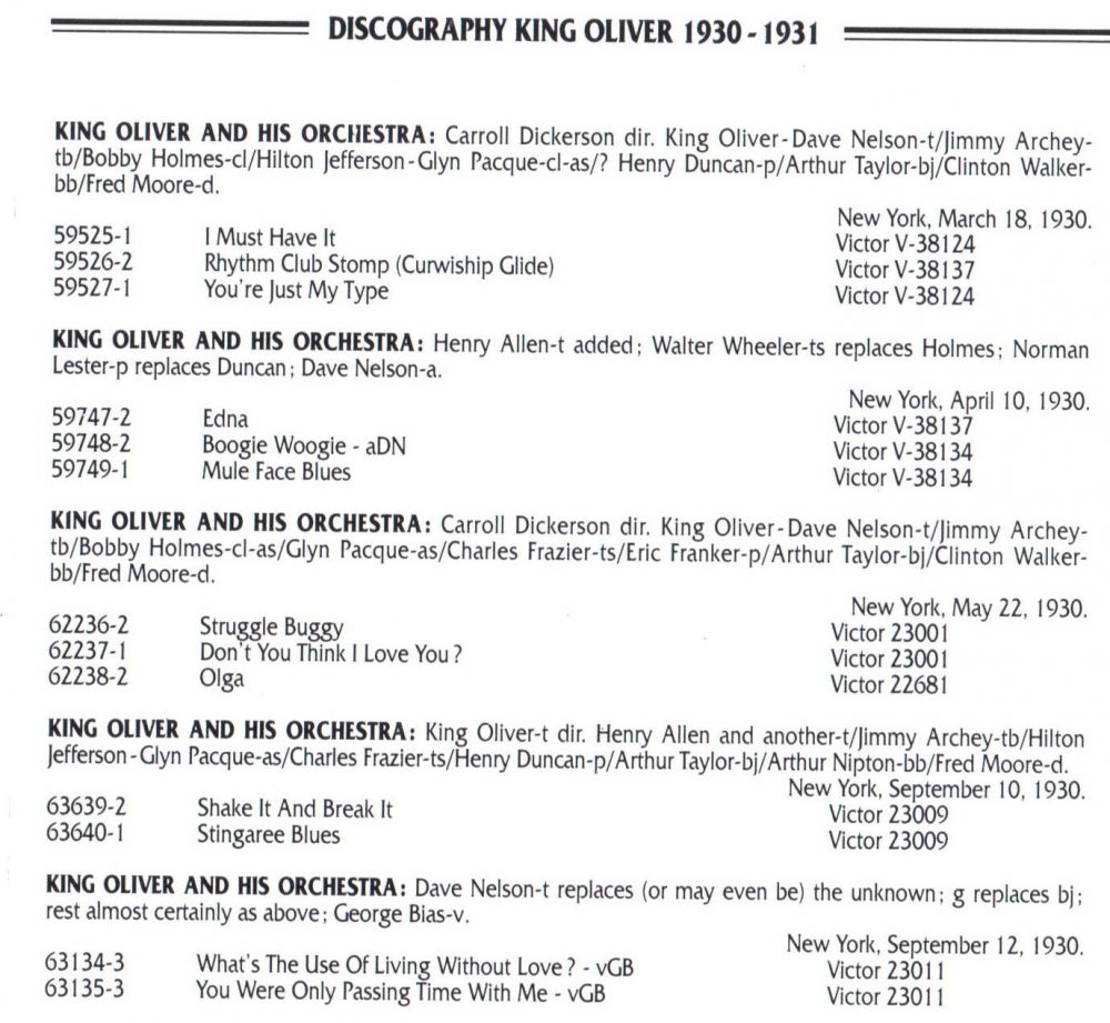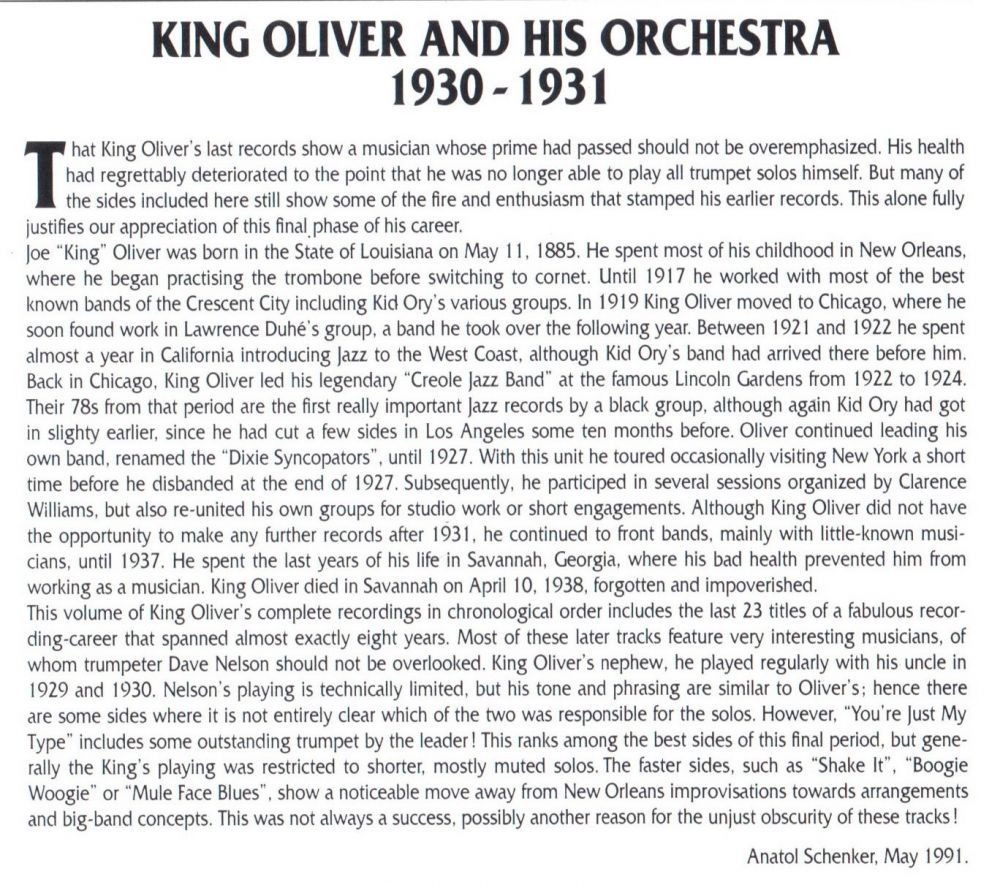 King Oliver and His Dixie Syncopators..Deep Hederson