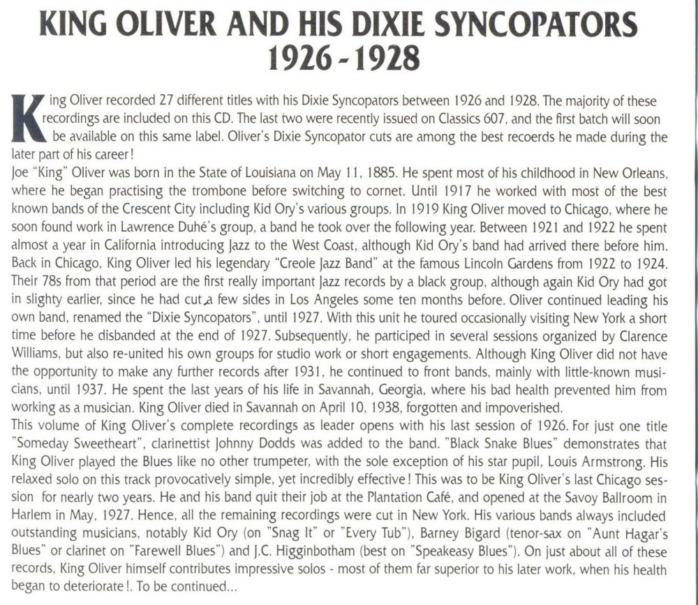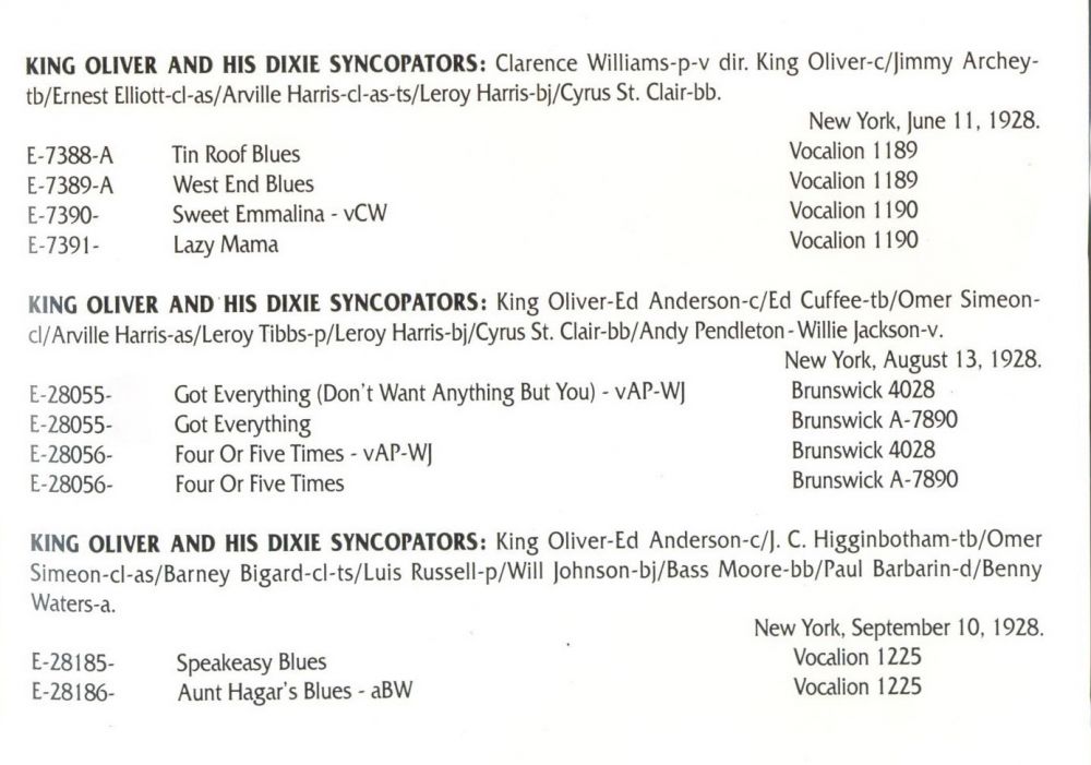 KING OLIVER AND HIS DIXIE SYNCOPATORS..Deep Hederson
