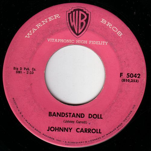 1959 unterschrieb Carroll einen Vertrag bei Warner Bros. Records, der aber nach zwei Singles zusammen mit seiner Band The Spinners (Bill Henna-p, Howard Reed-g, Grady Owen-b und Royce McAffe-d) wieder auslief. Seine bestverkaufte Platte war hier die mit dem Titel “Bandstand Doll“. In der Folge konnte Johnny Carroll im Vorprogramm zu Fats Domino auftreten. The Spinners waren witzigerweise auch Begleitband für Aufnahmen von einigen Capitol Records-Interpreten. Das führte natürlich zu Spannungen zwischen den Labels.