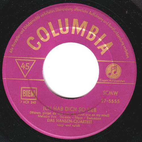 Das Hansen-Quartett (manchmal auch Hansen-Boys und -girls, Bernd Hansen-Singer etc.) haben über zwanzig Cover-Versionen aufgenommen. Ich will jenen kleinen Teil hier vorstellen, wo ich in meiner Sammlung sowohl Original- als auch Cover-Version habe;