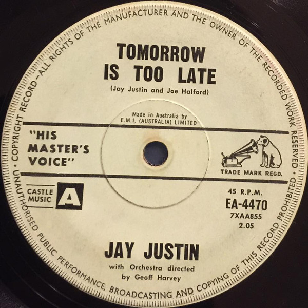 ?? 62....EA-4470....JAY JUSTIN with Orchestra directed by Geoff Harvey..Little Miss Tease (7XAA854)/Tomorrow Is Too Late (7XAA855)
