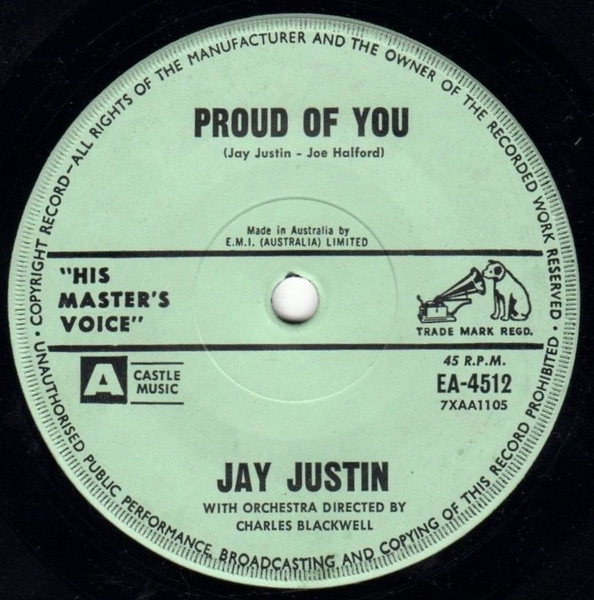 03 63....EA-4512....JAY JUSTIN WITH ORCHESTRA DIRECTED BY CHARLES BLACKWELL..Proud Of You (7XAA1105)/JAY JUSTIN WITH ORCHESTRA DIRECTED BY GEOFF HARVEY..Love Me, Love Me, Baby Darling (7XAA1106)