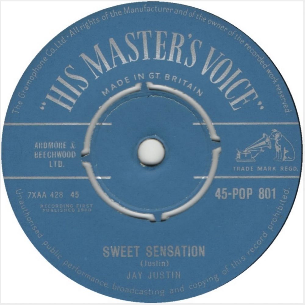11 60....45-POP 801....JAY JUSTIN..Nobody's Darlin' But Mine (7XAA 427)/Sweet Sensation (7XAA 428) (AUS: HIS MASTER’S VOICE 4389)