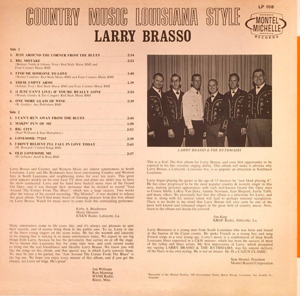 Brasso wurde eigentlich als James Larry Brasseaux in der kleinen Stadt Henry (Vermillion Parish) gleich außerhalb von Abbeville geboren. Mit 10 Jahren spielte er Gitarre und mit 13 gründete er seine erste Band. Als er älter wurde, begann er in lokalen Clubs in Südlouisiana zu spielen und dann gingen sie nach Texas, um dort etwa drei Jahre lang ihre Country-Musik zu verbreiten. 1963 kehrte er nach Louisiana zurück, um sein erstes Fernsehabenteuer zu starten: Er produzierte seine eigene „Larry Brasso Show“, die am Samstagnachmittag stattfand und schließlich in 10 CBS-Fernsehmärkten im ganzen Staat syndiziert wurde. Die Musikshow umfasste nicht nur Country, sondern auch Cajun- und französische Musik.