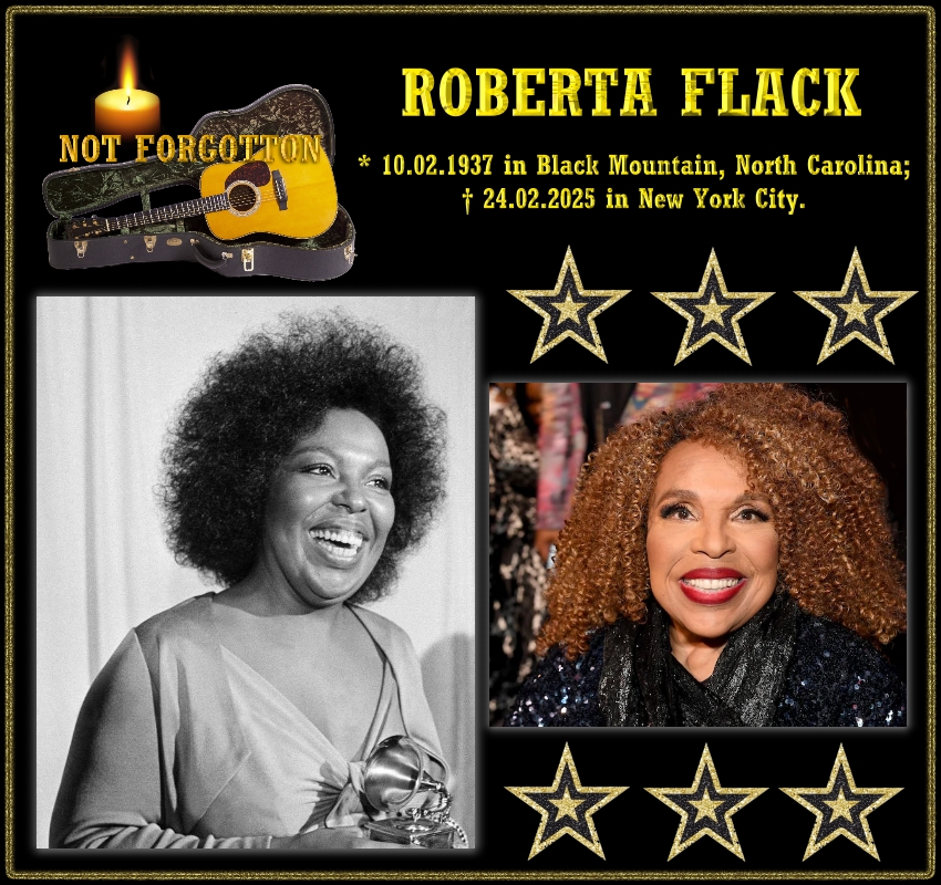 ROBERTA FLACK - NOT FORGOTTON 10.02.1937 IN BLACK MOUNTAIN, NORTH CAROLINA 24.02.2025 IN NEW YORK CITY R.I.P. ROCKINPETE & HARDI Anhänge an diesem Beitrag Dateiname: ROBERTA FLACK NOT FORGOTTON.jpg Dateigröße: 529.37 KB Titel: Heruntergeladen: 1386