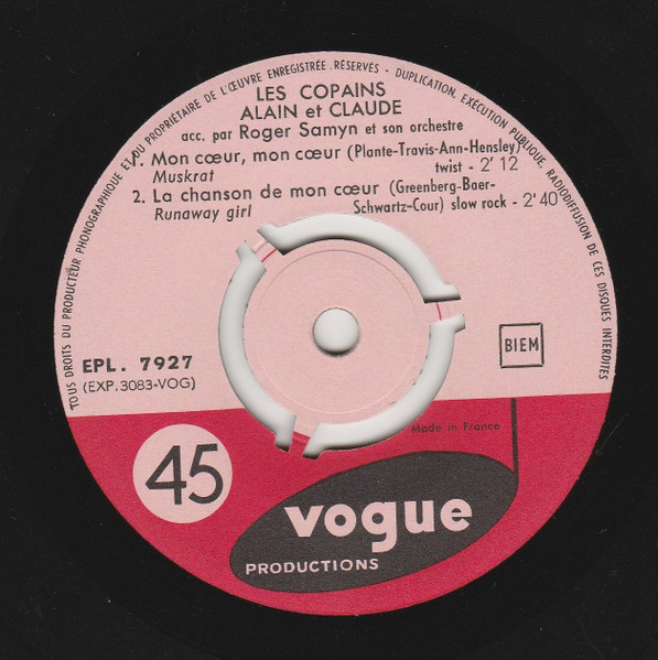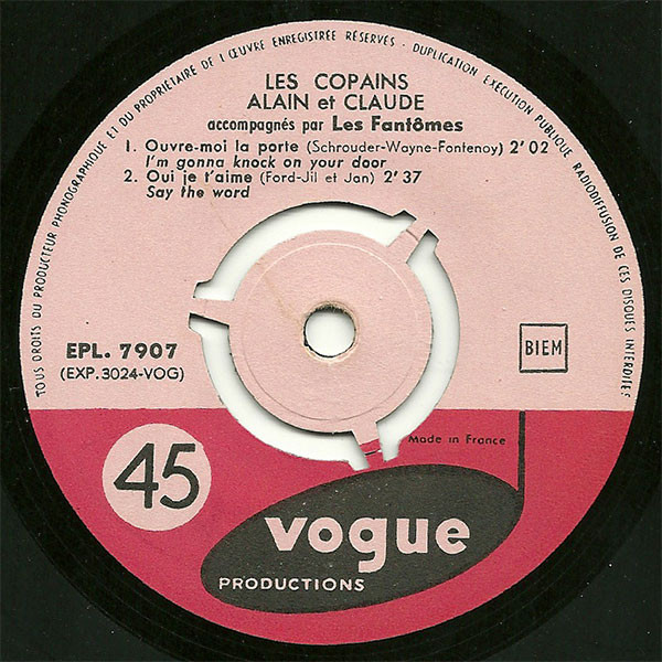 Alain GAUNAY wurde am 30. Juni 1944 geboren und Claude PITKOWSKI am 17. Oktober 1943, sie treffen sich am Lycée Charlemagne in Paris und werden Freunde, sie singen seit 4 bis 5 Monaten, ihre Vorbilder sind amerikanisch, Bands, die die Stimmharmonien von Doo-Wop und Pop vereinen elektrisch: die Everly Brothers oder Dion and the Belmonts. Um die Freunde zu begeistern, beschließen sie, an einer Vorsition für Daniel Filipacchi's Show "Salut les Copains" teilzunehmen, er lässt sie nur in Begleitung ihrer Gitarren auf einem von ihnen geschriebenen Song in die TV-Show gehen, das Publikum freut sich und Daniel Filipacchi wird seinen Abschluss machen kommentiert mit "ihr werdet zwei hören". Aufgrund dieses Erfolgs beschließt Alain, die Plattenfirmen anzurufen. Die erste, die Vogue-Schallplatten, hat sie für ein Vorsprechen in dieser Woche einberufen (es sollte im Januar 1961 sein). Ein paar Tage später telefonierte Jacques Wolfson, der ihnen anbot, einen Vertrag zur Aufnahme einer 45T-Schallplatte mit 4 Songs zu unterzeichnen; als Minderjähriger musste man die Eltern überzeugen, diesen Vertrag zu unterzeichnen, für Claude gab er das Versprechen, die Highschool fortzusetzen, um seine Arbeit zu bestehen Teil 1 des Abitures am Ende des Schuljahres (was getan wurde). Um diese erste Platte zu realisieren, erhielten sie die Erlaubnis, ihren Song „Cet été“ unter die Titel ihres Managers Jacques Wolfson zu setzen, diese Songs waren Übersetzungen und Adaptionen amerikanischer Songs, darunter „Corinne, Corinna“, ein Lied aus dem Jazz- und Country-Repertoire, das bereits von vielen Künstlern gesungen wurde berühmt auf Englisch, aber niemals auf Französisch und zwei Cover ihrer Idole, die Everly Brothers, „Problems“ und „That’s what you do to me“. Die Proben werden bis Juni durchgeführt, um die Aufnahme direkt nach dem Abitur zu machen und bevor sie nach England gehen, um ihr Englisch zu perfektionieren. Sie lernten das Orchester am Tag der Aufnahme im Studio kennen, sie haben noch nie mit Profis gesungen, die für die musikalische Begleitung ihrer Stimmen verantwortlich sind, und das ist die Schwierigkeit: „Catastrophe wird sagen, Claude, wir haben nie mit einem Orchester gesungen oder Playback gemacht; Ergebnis: Unmöglich, einen Song zu machen, der vollständig aus einem einzigen Handel war und die Studios verlassen mussten, um unser Flugzeug zu erwischen, indem wir Musiker, Künstlerische Leiter und Techniker glauben, dass unsere Karriere dort endete, bevor wir begonnen haben.“ ... Aber das ist es! Während ihres Aufenthalts in England im Juli am Strand von Hastings liegend, waren sie nicht überrascht, einen Song im Radio Europe1 zu hören: "Corrine Corrina", gesungen von ... „Buddies“, ihr Künstlername, den sie gleichzeitig hatten, da sie sich bisher mit ihren Vornamen „Alain & Claude“ genannt haben; die Platte wurde gemacht, indem sie die für die Bearbeitung geeigneten Tonaufnahmen ausgeschnitten und geklebt haben, EPL 7.875 Vogue, die von Roger Samyn in Nüchtern orchestriert wurde, sind ihre Songs sehr gut für ihre Stimmen arrangiert. „Auf dem Weg nach Frankreich erinnert sich Claude, sind wir am Flughafen auf den Feldern Elysées in einem großen Plattenverkaufshaus unsere 1. 45 Runden gekauft, um die Verkäuferinnen zu überraschen, die uns erkannt haben, indem sie uns das Cover vorstellten.“