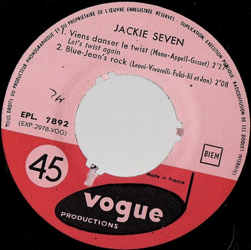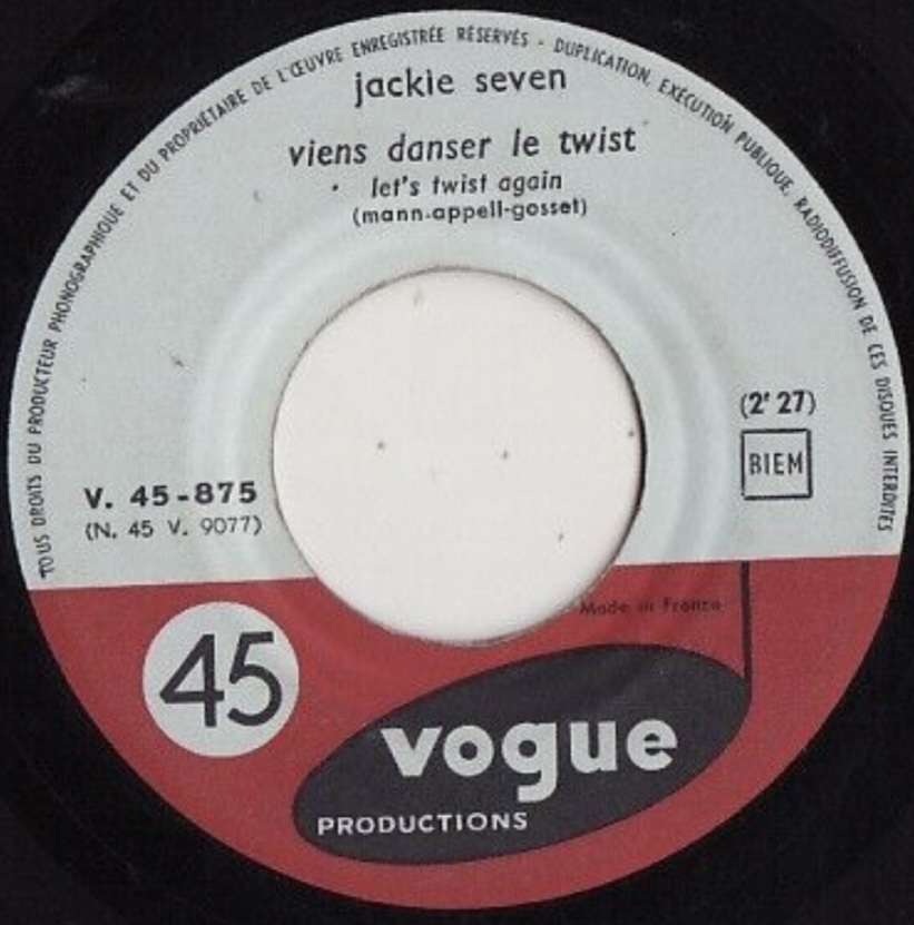11 61....V. 45 - 875....jackie seven..viens danser le twist let's twist again/sa grande passion his latest flame
