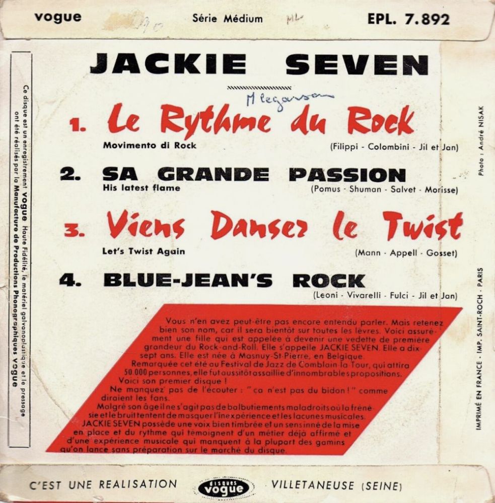 11 61....V. 45 - 876....jackie seven..Le rythme du rock movimento di rock/blue-jean's rock