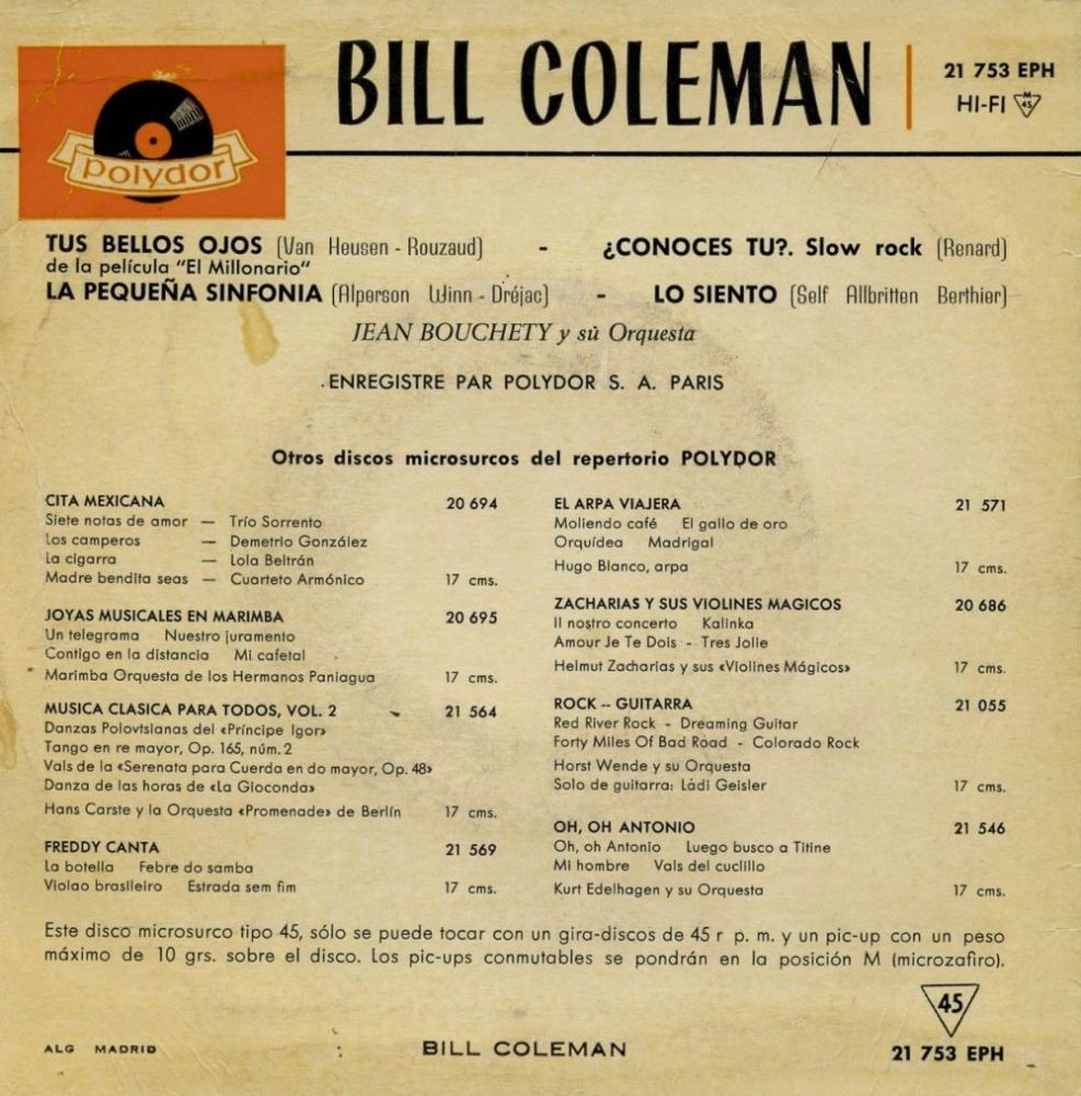 William Johnson Coleman (* 04. August 1904 in Paris, Kentucky, USA, + 24. August 1981 in Toulouse, Frankreich) war ein amerikanischer Jazz-Trompeter. 1909 zog Colemans Familie von Kentucky nach Cincinnati. Seine ersten musikalischen Erfahrungen sammelte er mit Klarinette und C-Melody-Saxophon, entschied sich aber schließlich für die Trompete. Als junger Mann arbeitete er als Bote für die Telegrafengesellschaft Western Union. Er studierte bei dem Cincinnatier Trompeter Theodore Carpenter und spielte in einer Amateurband unter der Leitung des Posaunisten J.C. Higginbotham.