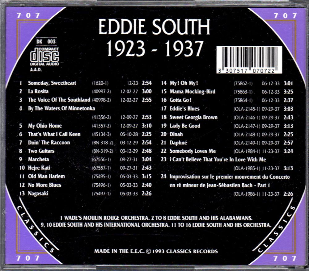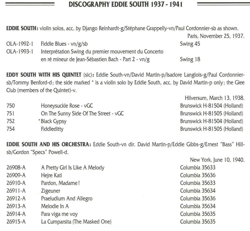 Eddie South, Stéphane Grappelli - vln; Django Reinhardt - g; Roger Chaput - g; Wilson Myers - bs