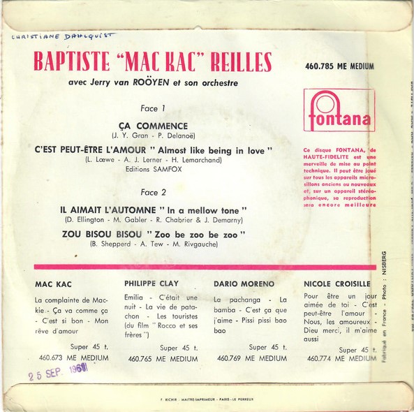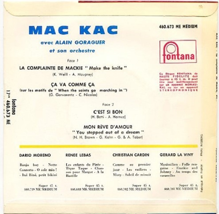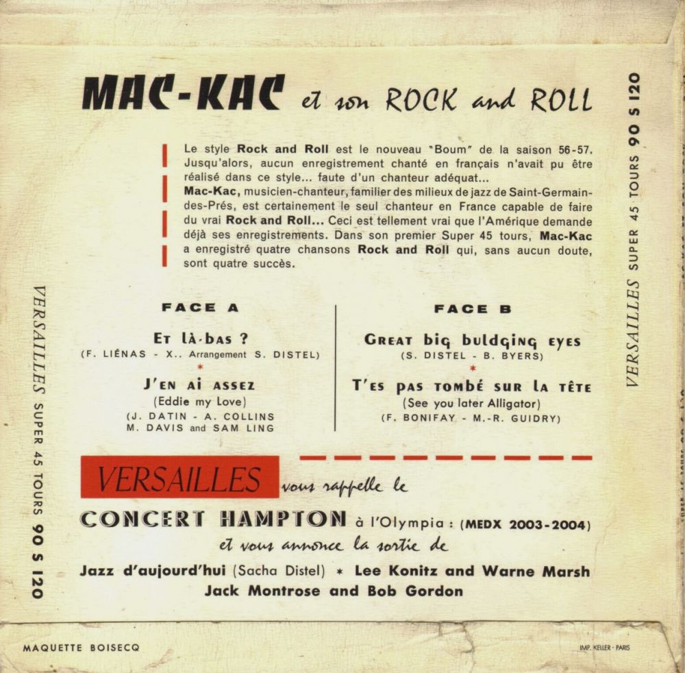 One of the french pioneers of rock'n'roll with Moustache, Boris Vian, Henri Salvador.