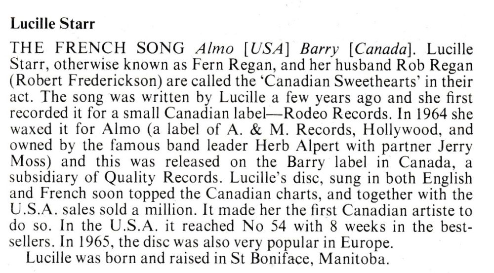 Auch bei Gerry Myers ist Lucille Starr als Autorin genannt.
