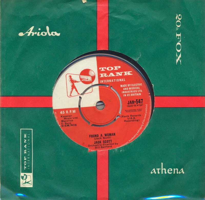 Engl. Top Rank Nr. JAR-547 - ( aus 1961) -Jack Scott mit Found A Woman + Is there something