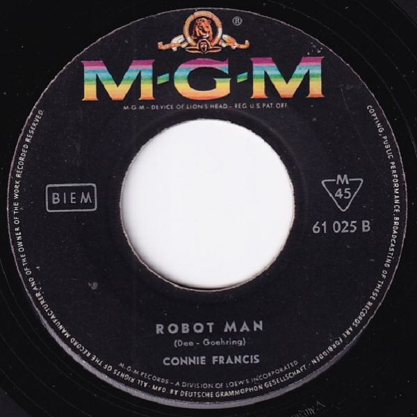 Worte und Musik von “Robot Man“ stammen von dem Autoren-Duo Sylvia Dee und George Goehring. Dieser Titel wurde von Connie Francis mit dem Orchester Joe Sherman am 7. April 1960 aufgenommen, wurde aber in den USA nicht veröffentlicht. Die Erstveröffentlichung dieser Aufnahme erfolgte erst im Mai 1960 als A-Seite für den Titel “Mama“, einem Titel aus der LP “Connie Francis Sings Italian Favorites“ (E/SE-3791), der im August 1959 im Abbey Road Studio in London, England, unter der Leitung von Tony Osborne aufgenommen wurde. In den USA gab es den Titel “Robot Man“ erst im Juli 1960, aber nicht von Connie Francis, sondern von Jamie Horton.