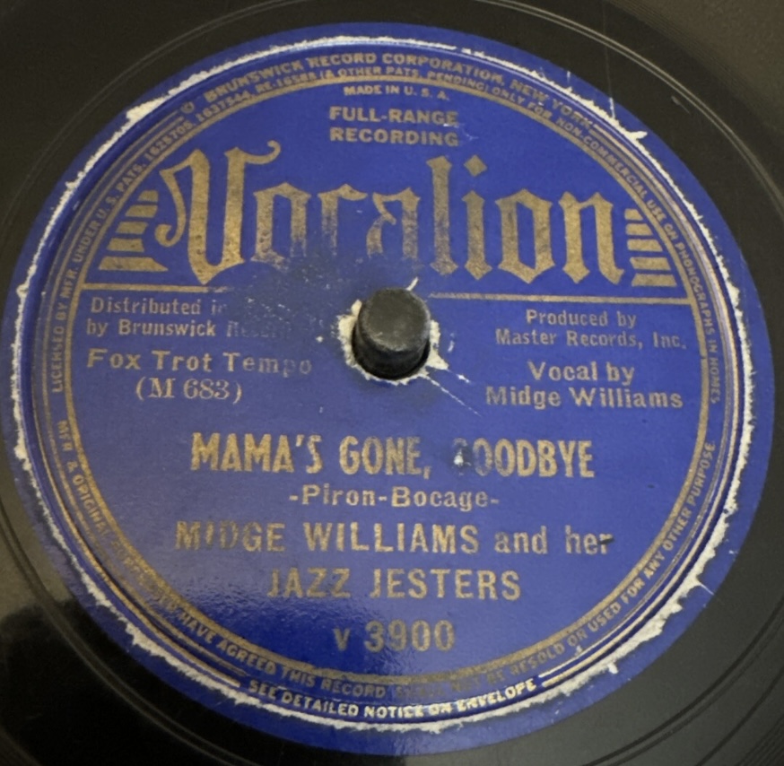 In Japan entstanden 1934 Midge Williams‘ erste Aufnahmen, als sie Songs in Japanisch und Englisch mit dem Tommy Missman Orchestra für die japanische Abteilung von Columbia Records einspielte. Sie nahm fünf Lieder auf, darunter “Dinah“, “Lazy Bones“ und “St. Louis Blues“, und sang dabei sowohl auf Englisch als auch auf Japanisch.