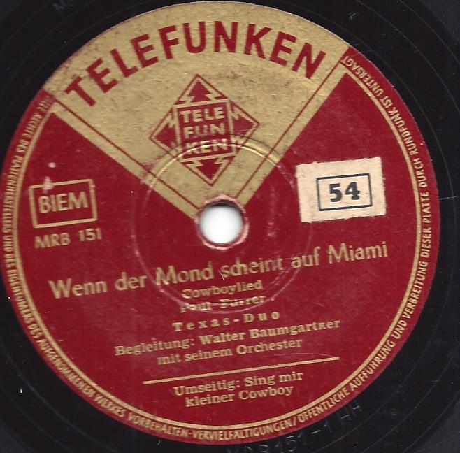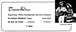 Das TEXAS-DUO stammte aus der Schweiz und spielte zwischen 1946 und 1951
