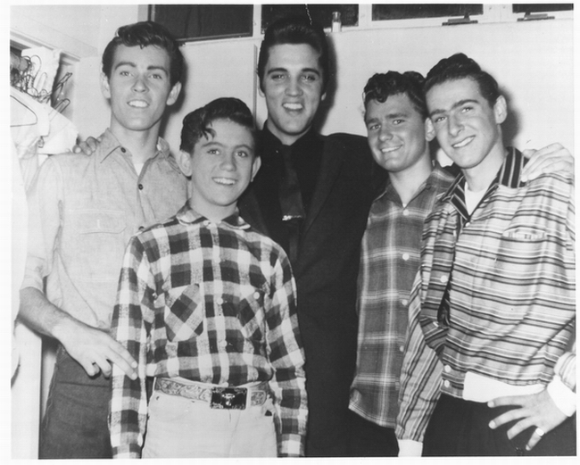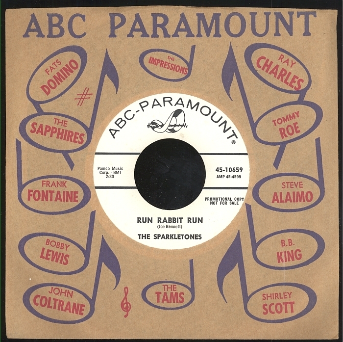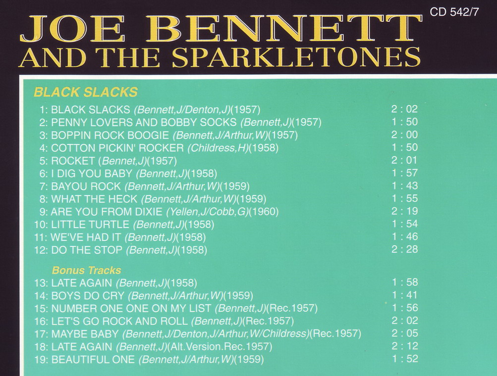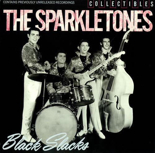 ich meine, Black Slacks paßt schon hier hin. Als die Sparkletones 1956 einen Talentwettbewerb gewannen, waren die Bandmitglieder zwischen 13 und 16 Jahre alt. Der anwesende Talent-Scout sorgte für den Rest. 1957 erschien Black Slacks auf ABC-Paramount und kam bis auf Platz 17 der Popcharts. Einladungen zur Nat King Cole und zur Ed Sullivan Show folgten. Bei einer ersten Tournee machte sogar der King seine Aufwartung (siehe Foto). Wenn man der US-Wikipedia glauben darf, steuerte bei Black Slacks ein gewisser Paul Anka die Backround-Vocals bei.