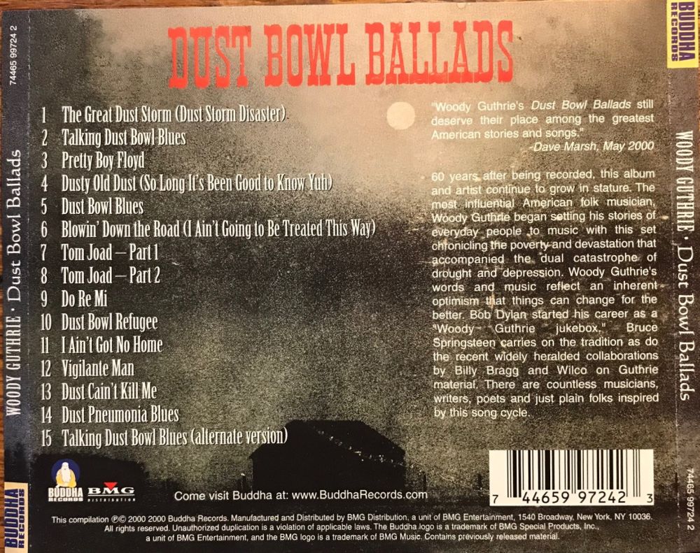 Am meisten in Erinnerung bleiben werden Woodys Lieder jedoch seine Dust Bowl-Balladen, Statements wie “Dust Pneumonia Blues“, “I Aint Got No Home“, “Do Re Ml“ und der nüchterne Abschiedsgesang “So Long It's Been Good 'fa Know You“, der die Geschichte der Dust Bowl-Katastrophe, der zerstörten Leben und der Migration der enteigneten Okies so lebendig erzählt wie John Steinbecks Roman “The Grapes Of Wrath“.
