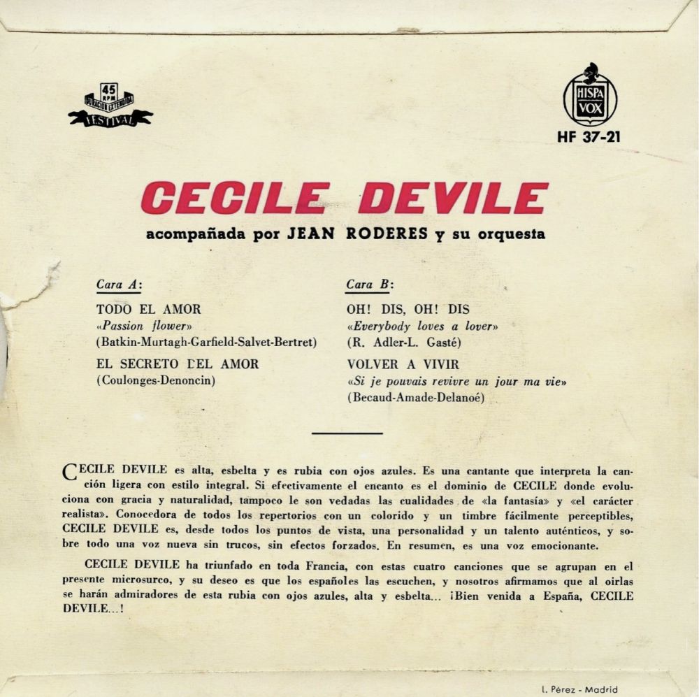 In Spanien war 1959 Cecile Devile auf Festival HF-37-21