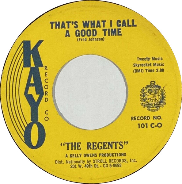 01 63....113....THE 5 SPENDERS..That's What I Called A Good Time (1026)/No Hard Feelings (1016) (KAYO 101 als The Regents)