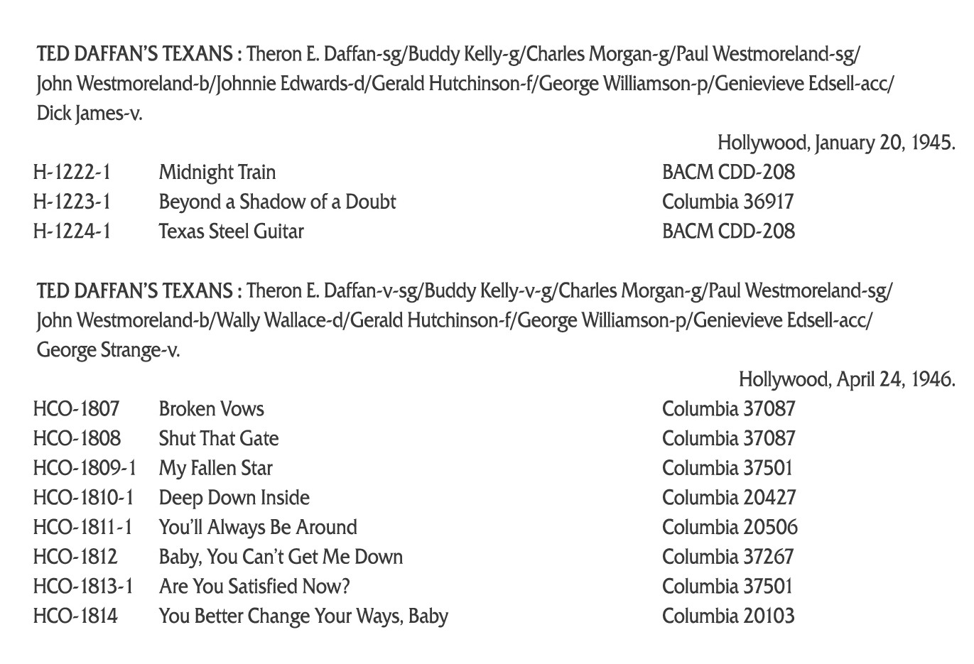 | Information: | TED DAFFAN'S TEXANS - NO LETTER TODAY |