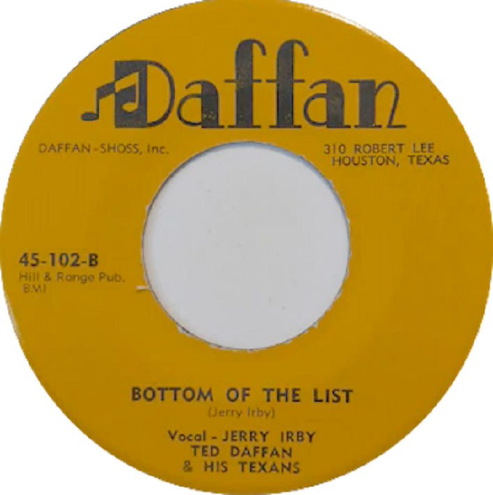 Daffan (TX) 45 - 102 : Jerry Irby Ted Daffan & His Texans - Bottom Of The List (1956)