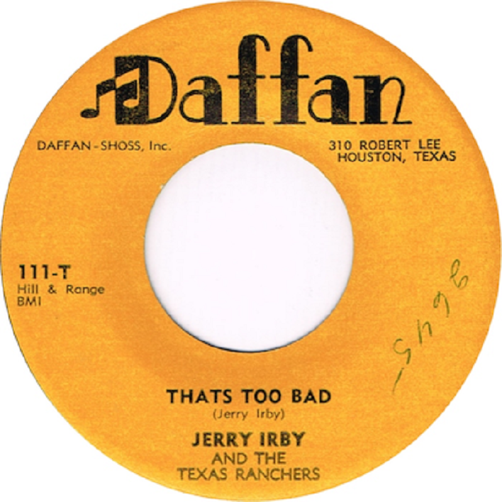 Daffan (TX) 45 - 111 : Jerry Irby & The Texas Ranchers - That's Too Bad (1957)