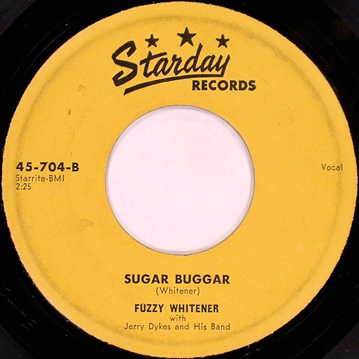 Ich weiß natürlich nicht, welche Hintergedanken Derwood Don Whitener im Jahre 1958 gehabt hat, als er sich vom Customer-Service "Package Deal" bei STARDAY unter den Interpretennamen Fuzzy Whitener eine Single herstellen ließ, die im April 1958 auf den Markt kam. War es nur reiner Spaß oder hat er auch gehofft, dass ihm dadurch ein Musik-Manager entdecken wird, was bei einigen bekannten Stars bekannterweise oft tatsächlich passierte. Wenn Letzteres zutreffen sollte, ist es ihm nicht gelungen, zumindest nicht schallplattenmäßig, aber als Musiker dürfte er unterwegs gewesen sein. Die A-Seite seiner einzigen Single kenne ich leider nicht, aber die B-Seite ”Sugar Buggar” liegt mir schon sehr, ganz besonders das irre Saxophon-Solo.