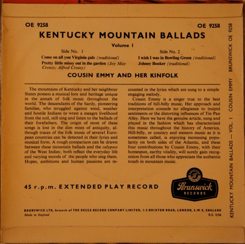 Dieses mountain music gal soll zwar in einer Blockhütte geboren sein, galt aber oft als „der erste Hillbilly mit einem Cadillac“. Ende der 40 er Jahre begann sie für Decca aufzunehmen, und ihr Album wurde unter den Folk-Revivalisten der 60 er Jahre zu einem beliebten Hit. Eine dieser Bands, die New Lost City Ramblers, spielte mit Cousin Emmy auf einer Folkways-Platte, doch sie ließ sie weit hinter sich.