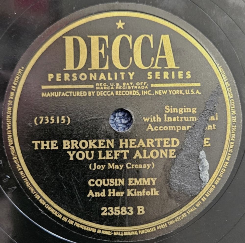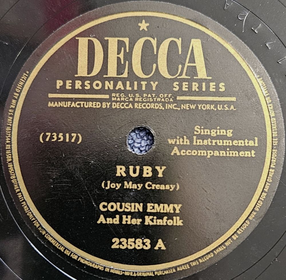 Dies führte zu einem Plattenvertrag bei Decca Records. Trotz ihres wachsenden Ruhms nahm sie nur eine Single, “Come All You Virginia Gals“, und ein Album für Decca auf. Diese Aufnahme und ihre Auftritte mit Cousin Emmy & Her Kinfolk, sowohl auf der Bühne als auch im Radio, schufen eine unglaublich begeisterte Fangemeinde.