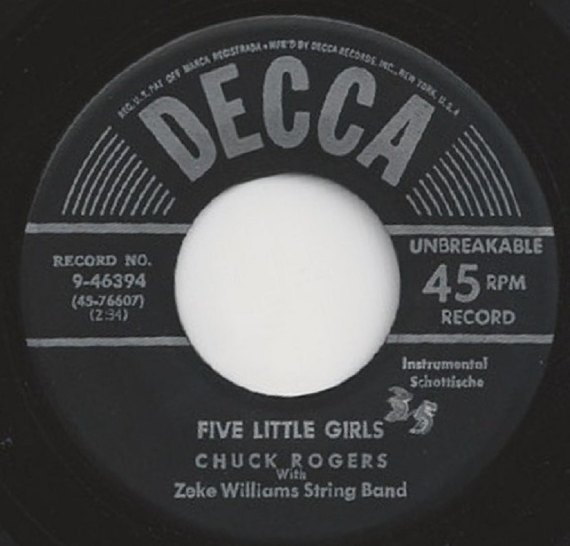 02 52....9-46394....CHUCK ROGERS With Zeke Williams String Band..Five Little Girls (45-76607)/Ragtime Annie (45-76608)