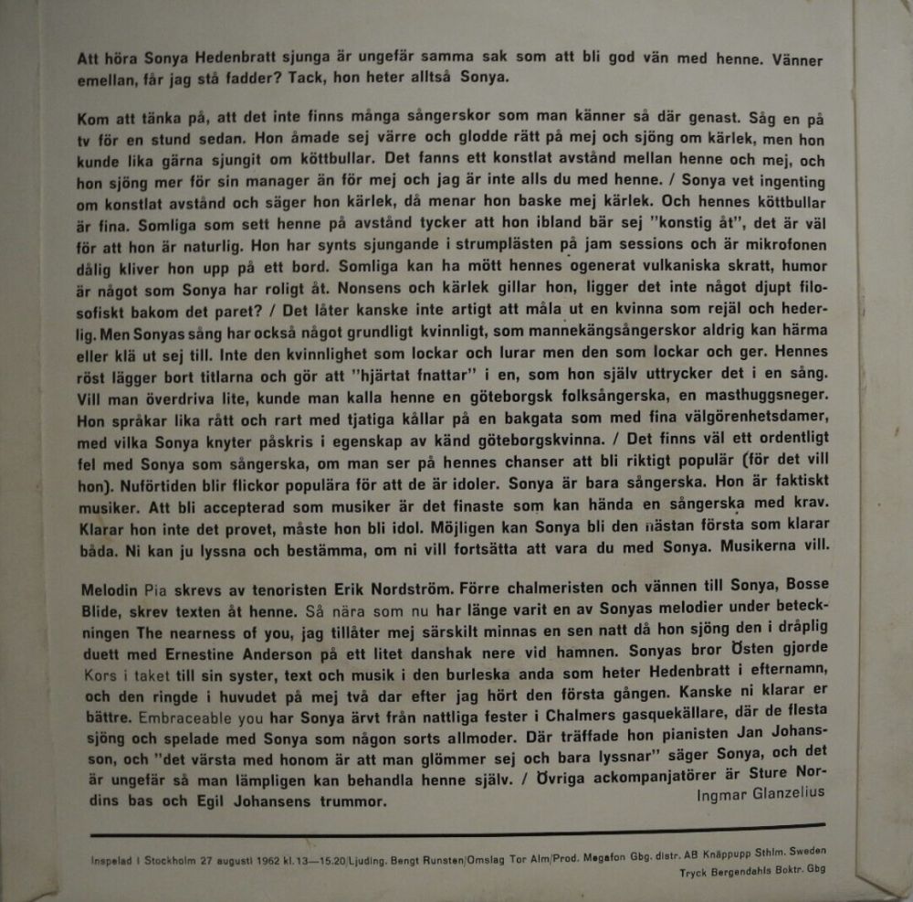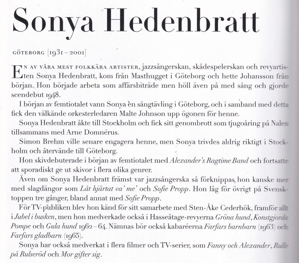 Sonya HEDENBRATT war seit dem Ende der 40er Jahre